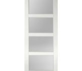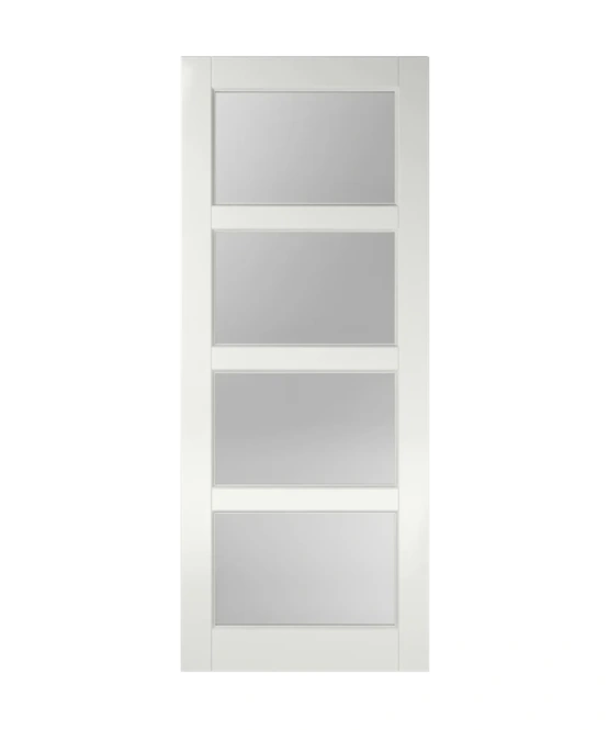 deze binnendeur brengt licht en ruimte in uw interieur dankzij de vier grote glasvlakken. Dit moderne ontwerp is perfect voor het creëren van een open sfeer zonder in te leveren op privacy.