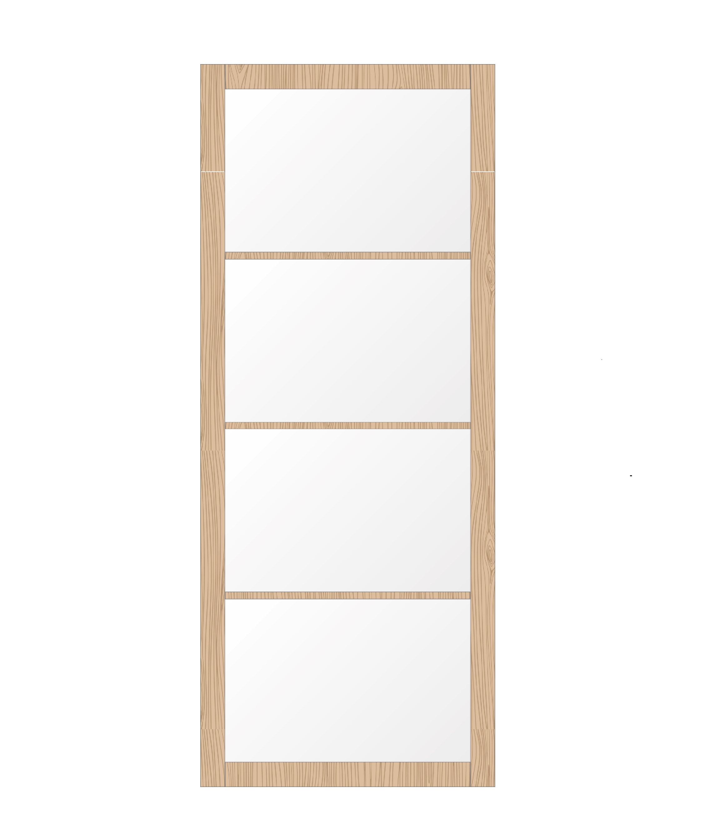 Vier horizontale glaspanelen in eiken, dat is de Binnendeur TBG004. Maximaal glas betekent maximale lichtdoorval door je woning. Het eiken frame van 75 mm breed zorgt voor stevigheid en laat die mooie natuurlijke houtnerf goed zien. Door de vier vakken krijg je een ritmische verdeling die rustig oogt maar niet saai is.