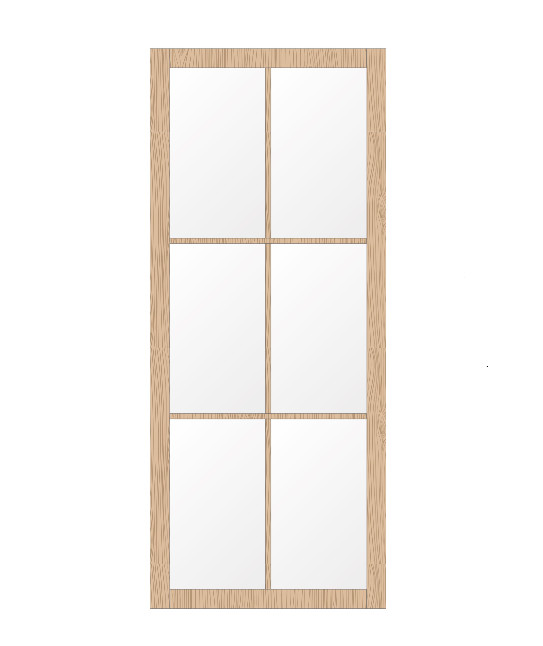 Zes glazen vakken verdeeld over twee kolommen, dat is de Binnendeur TBG06G. Minder druk dan een deur met acht vakken maar nog steeds die klassieke ruitenverdeling die je kent. Het eiken frame van 75 mm breed zorgt voor stevigheid en laat de natuurlijke houtstructuur mooi uitkomen. Door die verdeling krijg je veel licht maar blijft het overzichtelijk.
