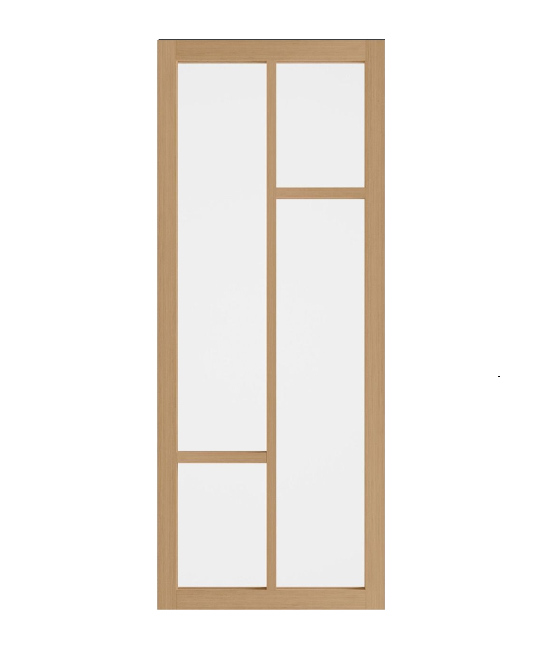 Het bijzondere aan dit model is de speelse verdeling van de glasvakken. Geen symmetrische indeling, maar juist een bewust asymmetrisch patroon dat de deur karakter geeft. Dit maakt de TW40 een perfecte keuze als je op zoek bent naar een Japandi deur die rust en moderniteit combineert.