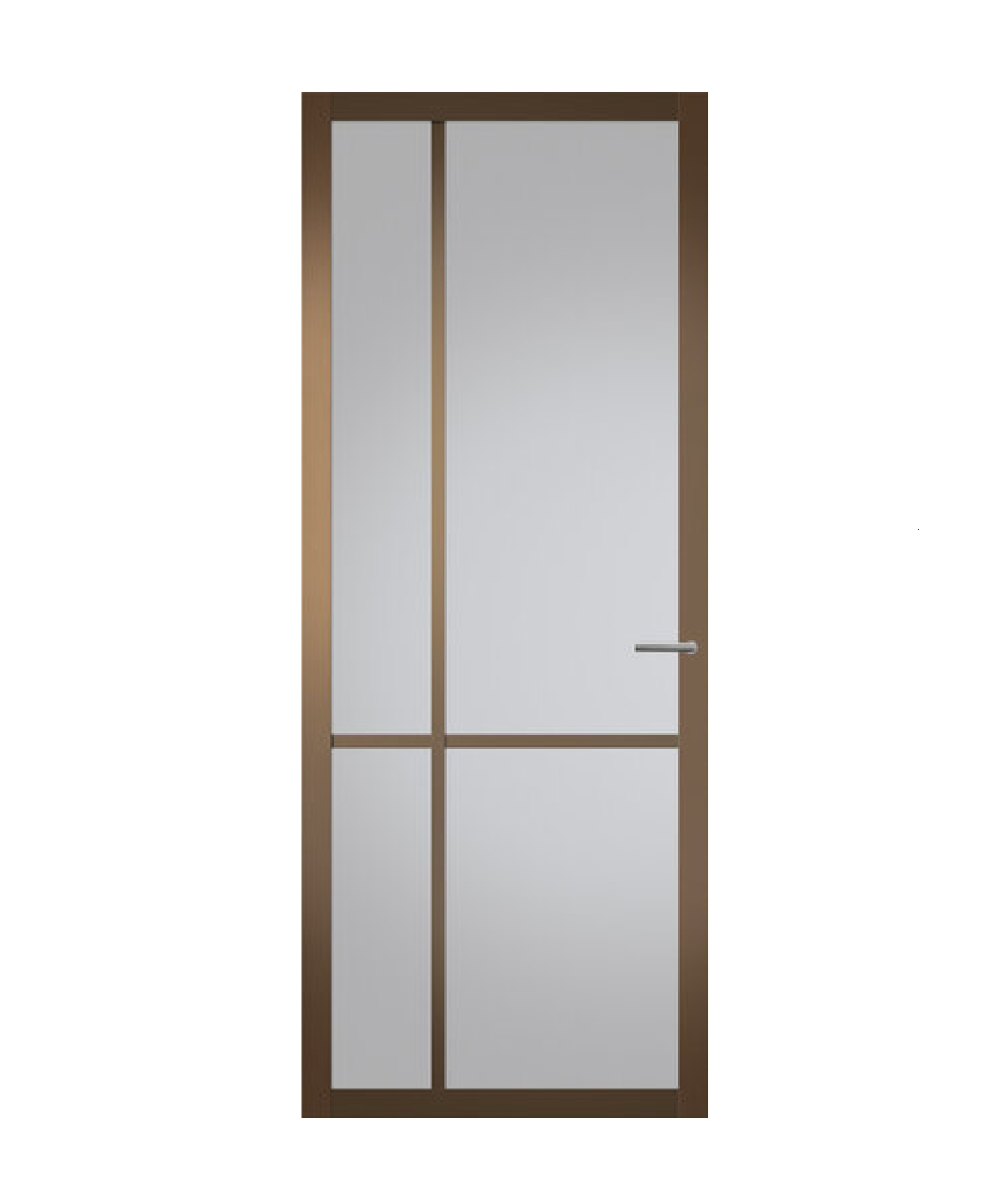 Glasdeur TX903MB in metalic brons is uitgevoerd met een slanke profilering. Hierdoor heeft dit model een eigentijdse, industriële en stijlvolle uitstraling. Combineer deze glasdeur met lijndeur TX953 voor een mooie eenheid in uw interieur.