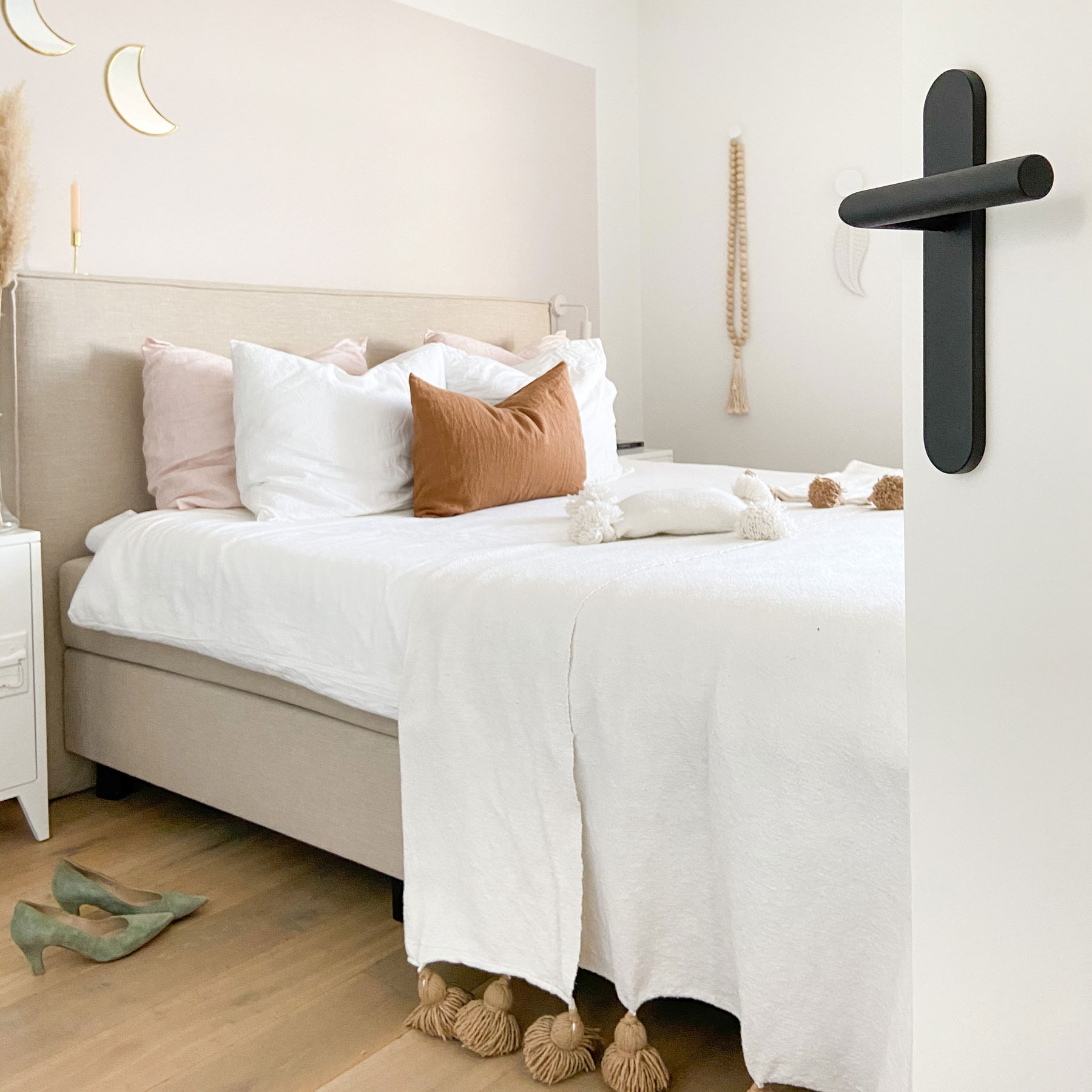 De Toi deurkruk wordt geleverd als compleet set met twee deurkrukken en bijpassende ronde rozetten, waardoor je direct een uniforme en hoogwaardige afwerking op je deur creëert.