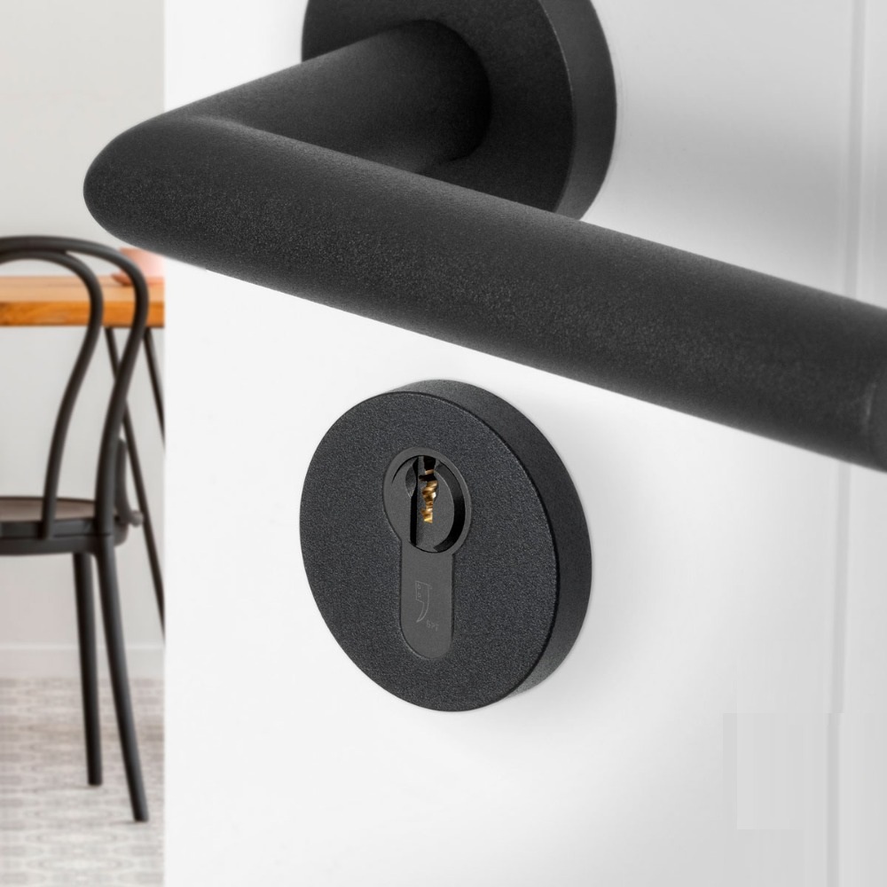 Deze deurkruk is vervaardigd uit hoogwaardig roestvast staal (RVS) en afgewerkt met een sterke zwarte poedercoating (RAL 9005). Deze coating zorgt niet alleen voor een diepe, matte uitstraling, maar beschermt ook tegen slijtage en verkleuring door UV-invloeden.